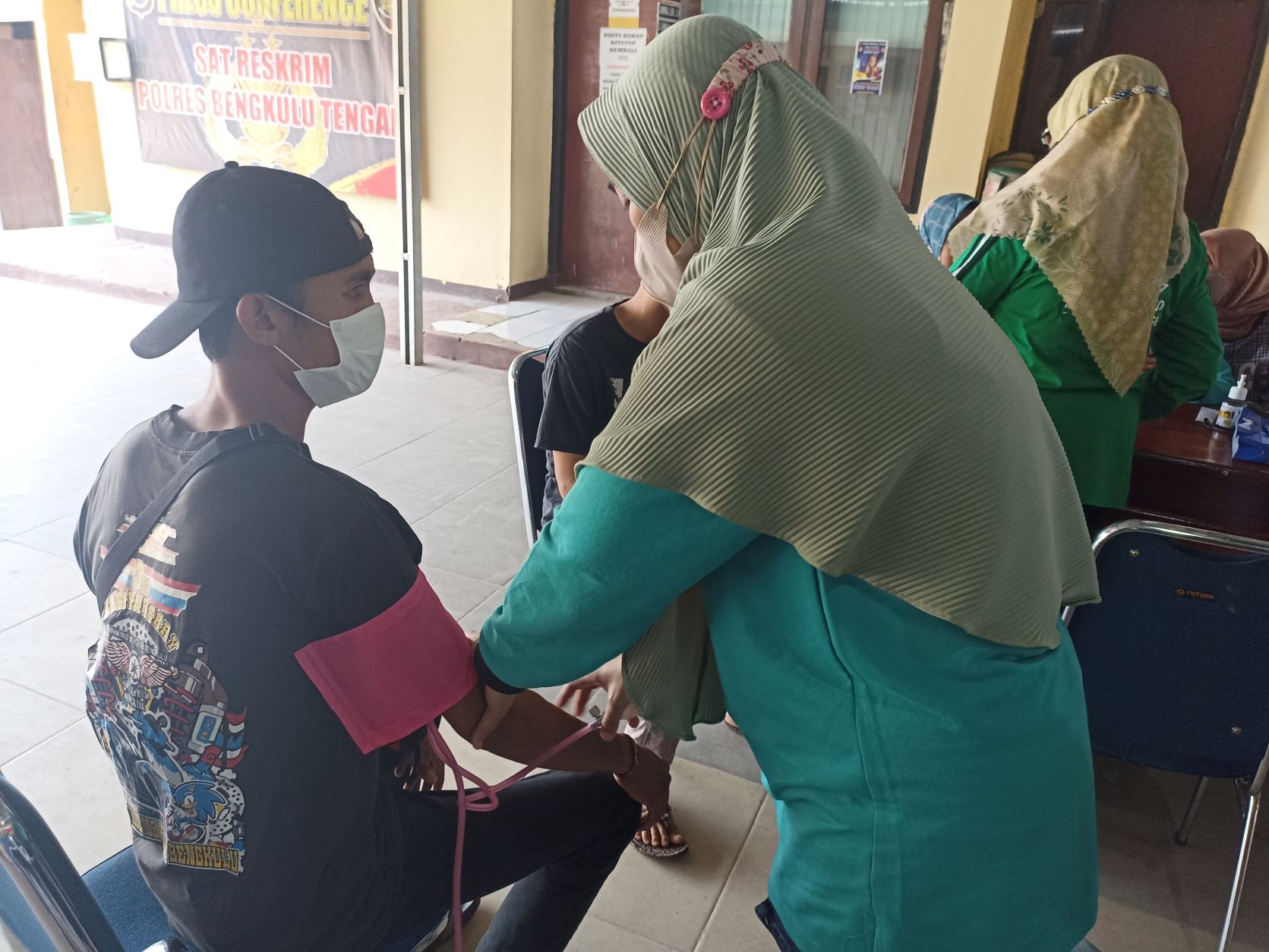 Warga Bengkulu Tengah saat mengikuti vaksinasi massal di Mapolres Bengkulu Tengah, Jumat (25/3/2022).