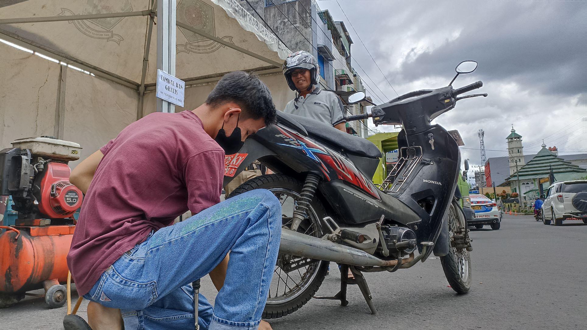 Salah satu Pos pelayanan yang ada di kawasan Bang Mego Curup, Kabupaten Rejang Lebong ini misalnya. Mulai dari peralatan tampal ban seperti, cup, cukit kompor, kanisir hingga kompresor ada, termasuk tukang tampal ban.