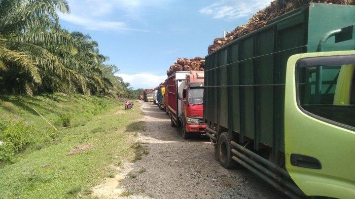 Ratusan truk sudah lama antre. Hal tersebut terjadi lantaran sistem pembelian TBS masih dilakukan buka-tutup.