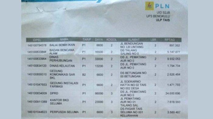 TRIBUNBENGKULU.COM, SELUMA - Unit Layanan Pelanggan (ULP) PLN Rayon Tais Kabupaten Seluma Provinsi Bengkulu mengirim surat kepada 8 dinas di lingkungan Pemerintah Kabupaten (Pemkab) Seluma.