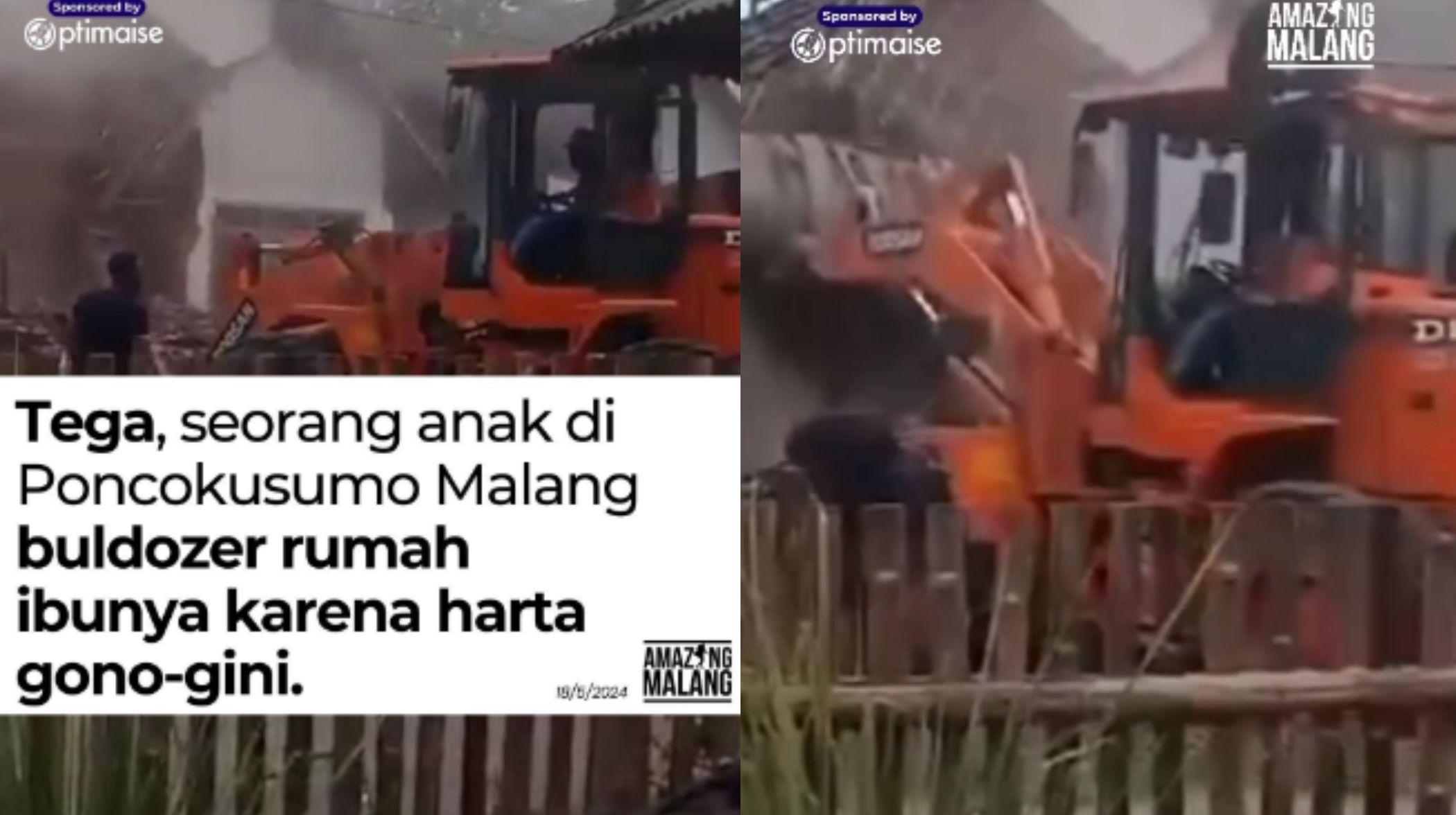 Viral Anak di Malang Robohkan Rumah Ibu Kandungnya Pakai Buldozer, Tak Mau Bagi Warisan dengan Adik
