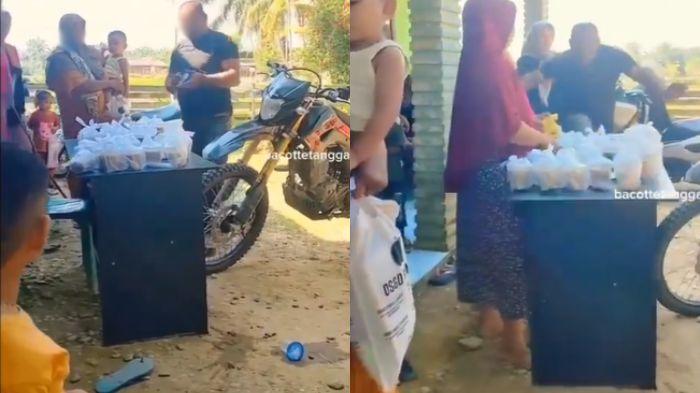 Sosok Kepala Desa (Kades) di Kebun Teumpeun, Peureulak, Aceh Timur tendang makanan untuk posyandu alias stunding hingga berserakan di tanah.