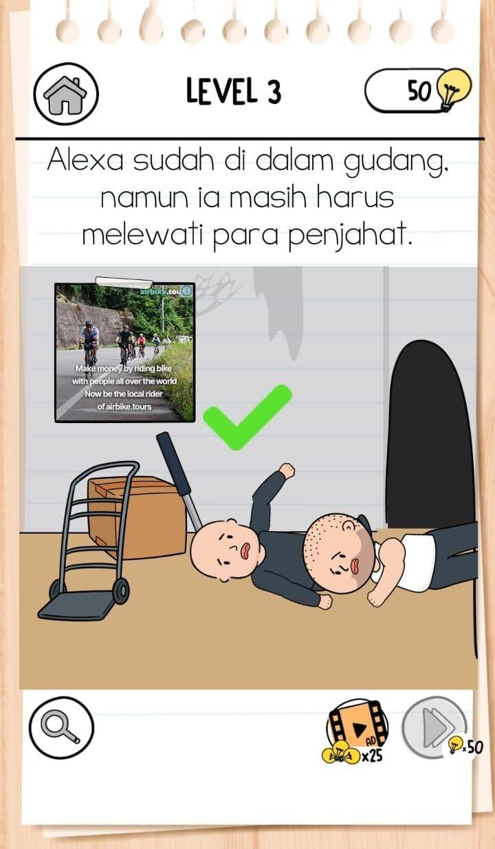 TRIBUNBENGKULU. COM - Berikut kunci jawaban Brain Test 3 Tricky Quests level 2, 3, 4, 5, 6 dan 7, Alexa memulai misinya untuk mencari cara menyusup ke gudang milik Salim Zalim.