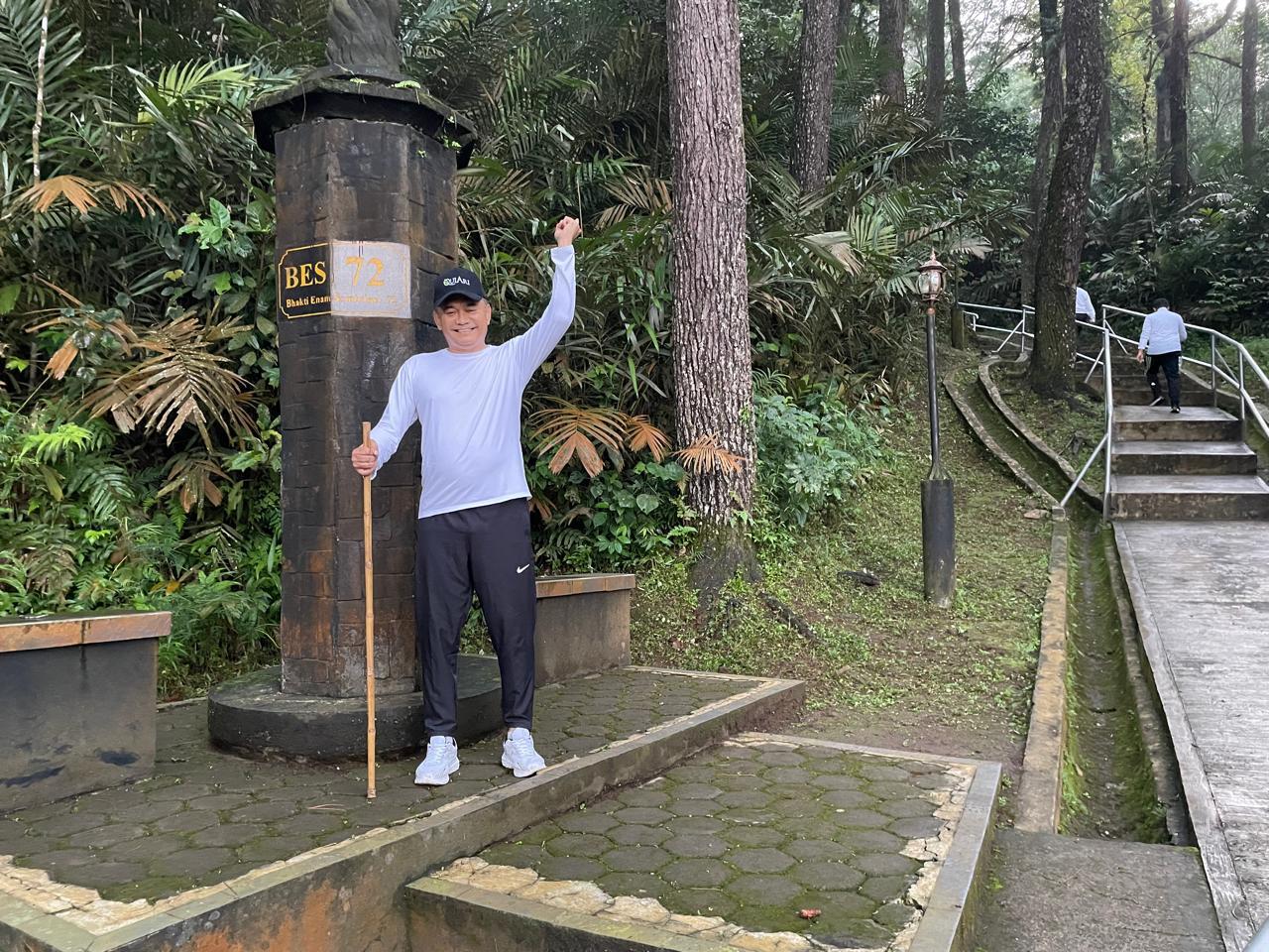 TRIBUNBENGKULU.COM, BENGKULU TENGAH - Bupati Bengkulu Tengah Rachmat Riyanto melakukan pendakian ke Puncak Bukit Tidar yang berada di komplek Akademi Militer Magelang, tempat retret kepala daerah digelar, Kamis (27/2/2025) pagi