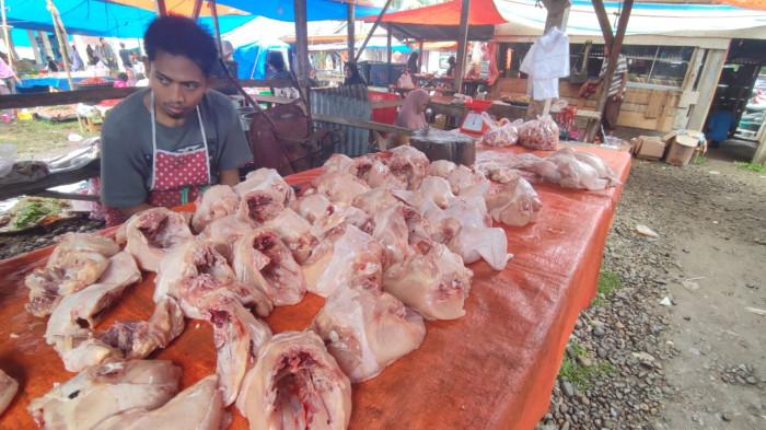 Harga ayam potong ras dan cabai merah di Pasar Koto Jaya Mukomuko turun pekan ini. Penurunan juga terjadi pada harga bawang merah.