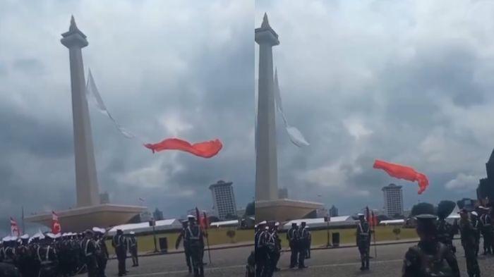 Detik-Detik Bendera Merah Putih Robek Terbelah Dua Saat Gladi HUT TNI di Monas, Ini Penyebabnya