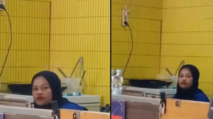 Dalam unggahan tersebut memperlihatkan pengguna akun itu merekam perempuan yang tengah berjualan burger.