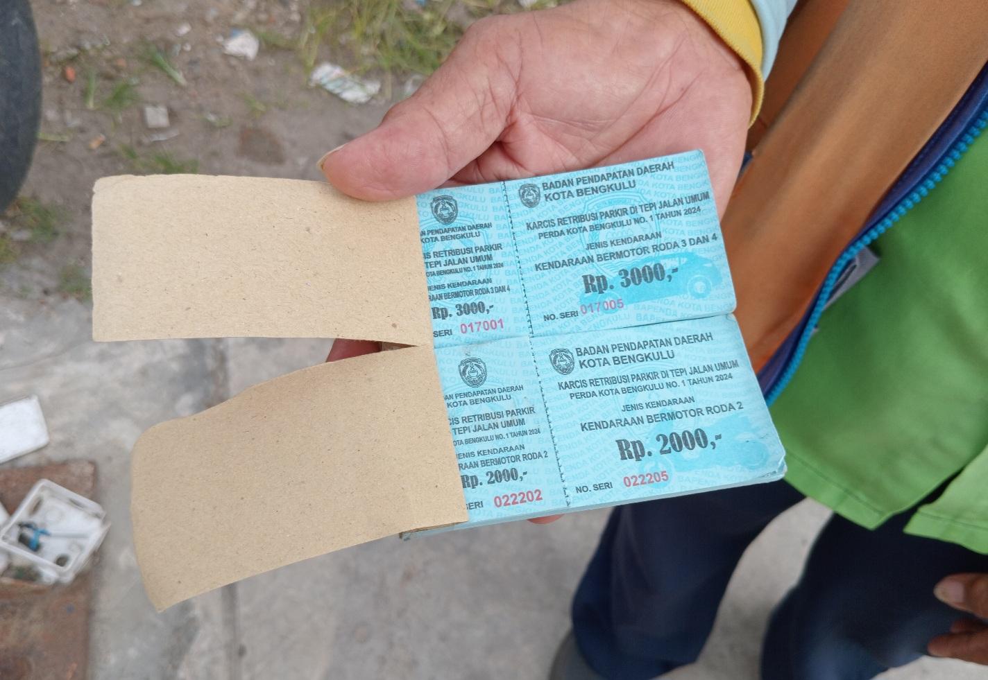 Parkir di Kota Bengkulu kini telah dilengkapi dengan karcis parkir, dengan tarif yang tertulis didalamnya.